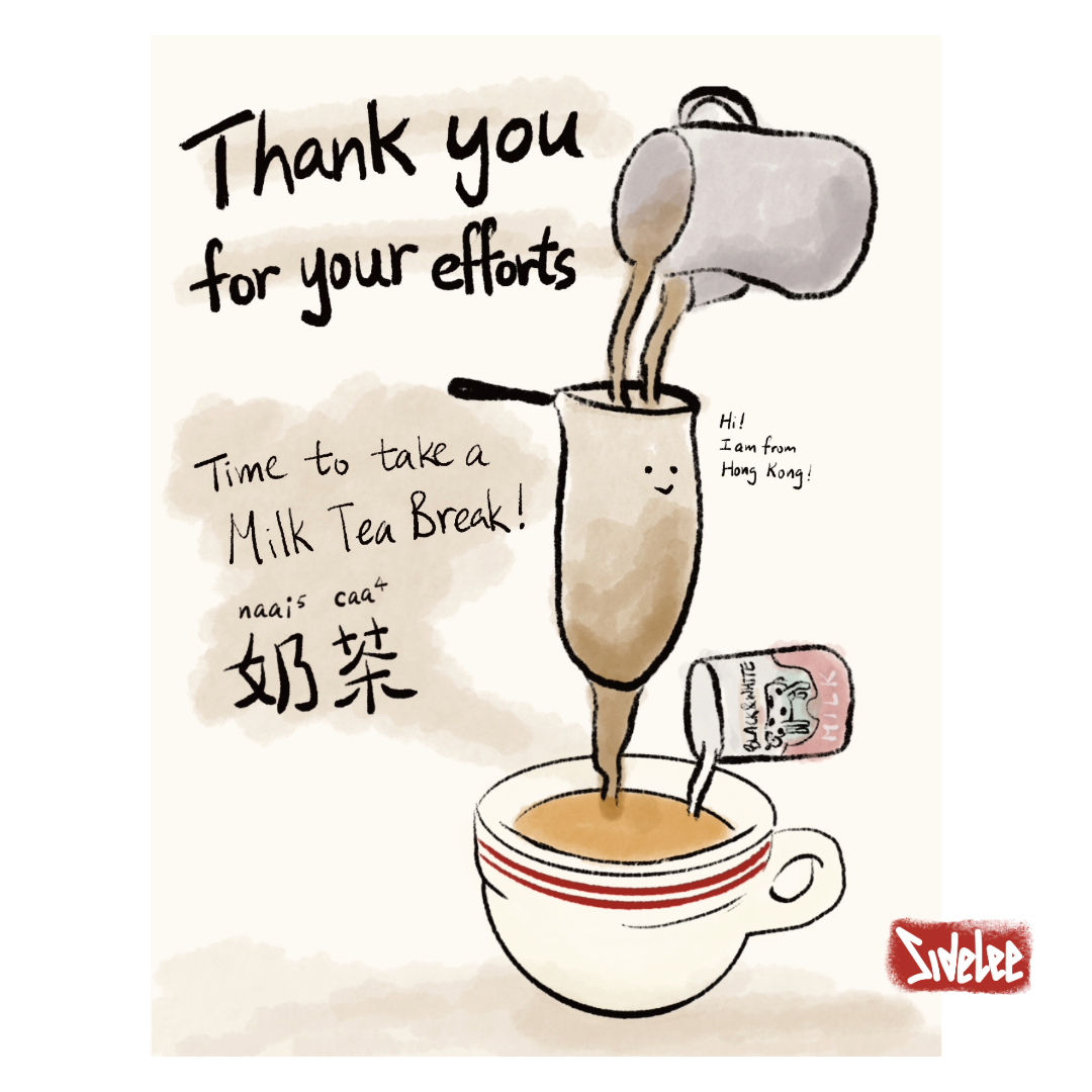 5.5 x 4.25 inches, 110lb cardstock high quality printed. Hong Kong-style milk tea, also known as “silk stocking milk tea,” is made by first filtering freshly brewed black tea through a cotton stocking. This process not only removes tea leaves and residue but also enhances the smoothness and fragrance of the black tea. Afterwards, evaporated milk and sugar are added to complete the drink.